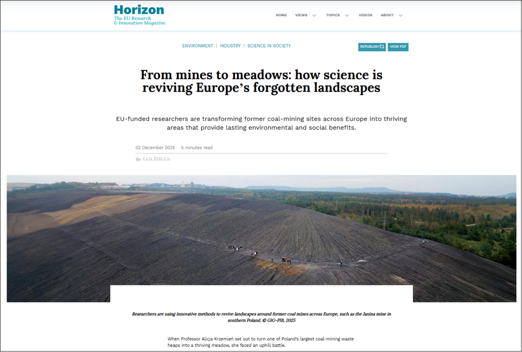 60.- The GreenJOBS Project was showcased in the Horizon – The EU Research and Innovation Magazine in an Article titled “From mines to meadows: how science is reviving Europe’s forgotten landscapes” (Katowice, Poland, 25 April 2025).